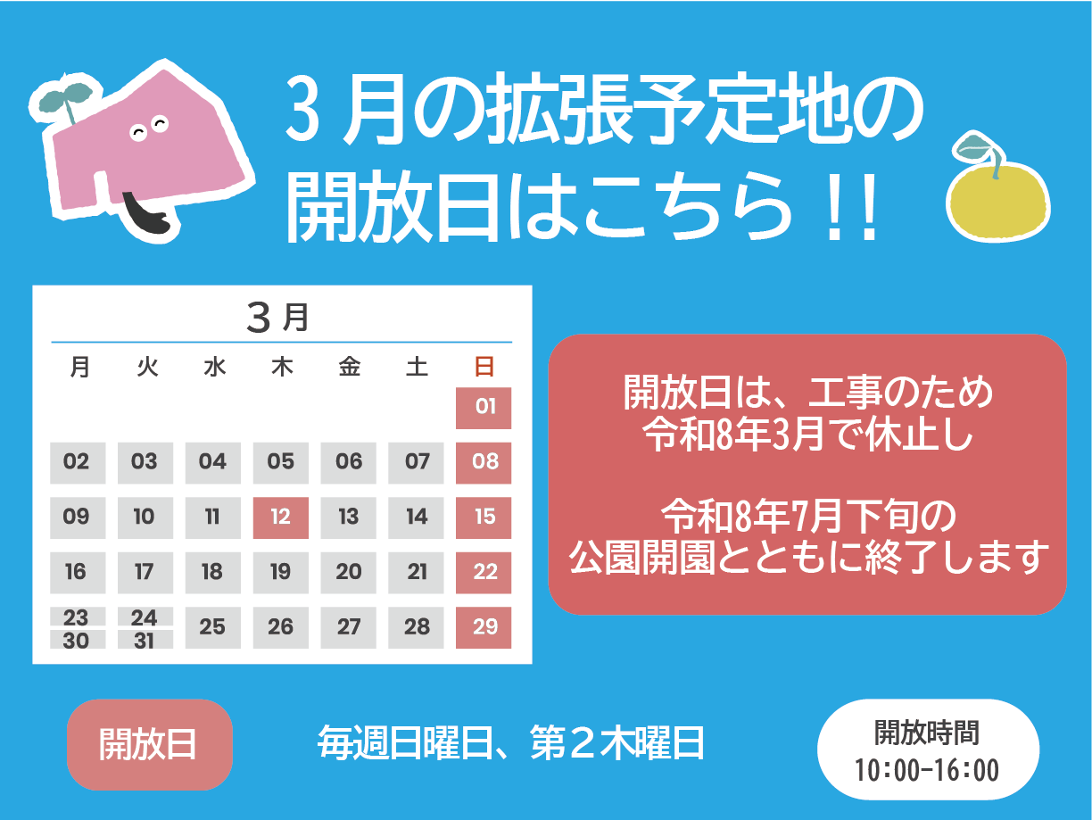 【拡張予定地開放日】 毎週日曜日、第2木曜日