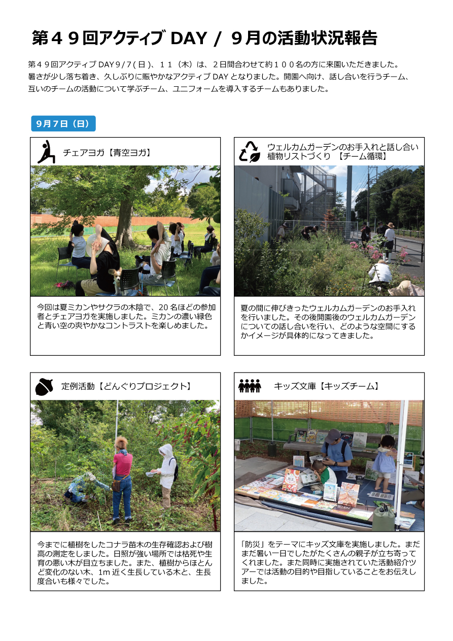 第49回アクティブDAY9/7(日)、11(木)は、2日間合わせて約100名の方に来園いただきました。